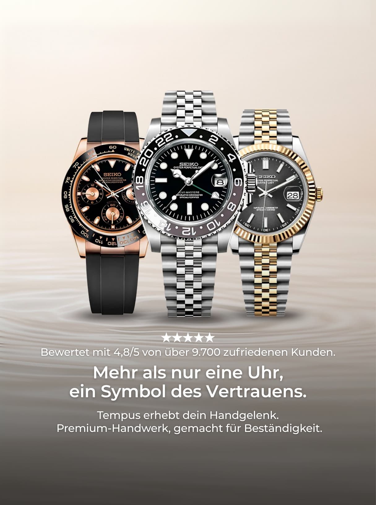 Vertraut von +9.700 Uhrenliebhabern4.8/5Die Verarbeitung ist beeindruckend, fühlt sich an wie eine Luxusuhr – aber zu einem fairen Preis.