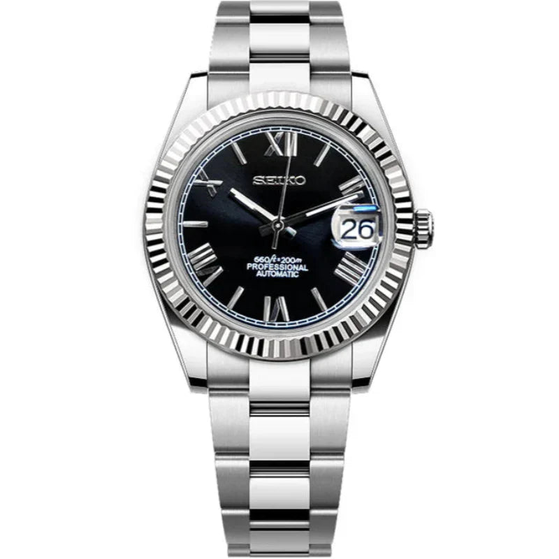 Inspired by the iconic Datejust design, and featuring the prestigious Seiko NH35 automatic movement, we present the Seiko Mod Datejust. A 36 / 40 mm high-end quality watch combining the perfect alliance between excellence and accessibility.