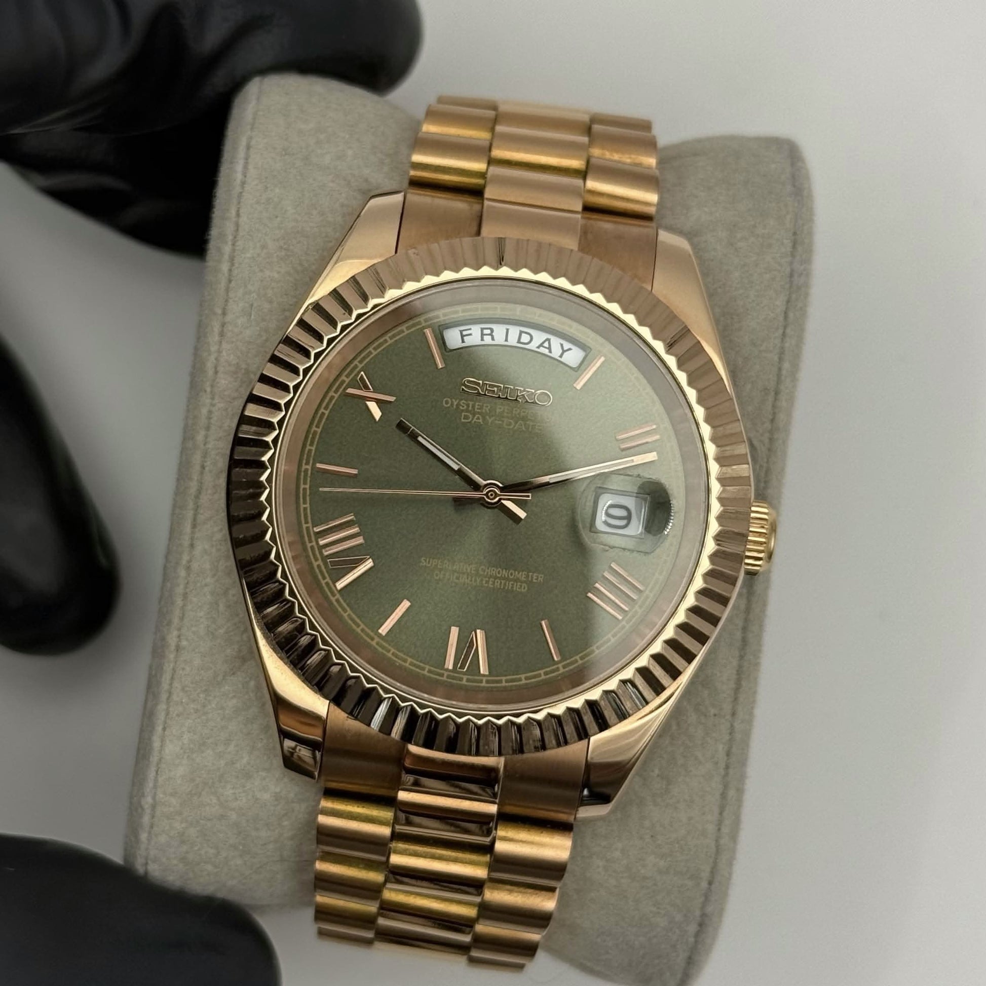 Inspired by the classic Day-Date design, we present the Seiko Mod Day-Date. A 40 mm high-end quality watch combining the perfect alliance between excellence and accessibility.