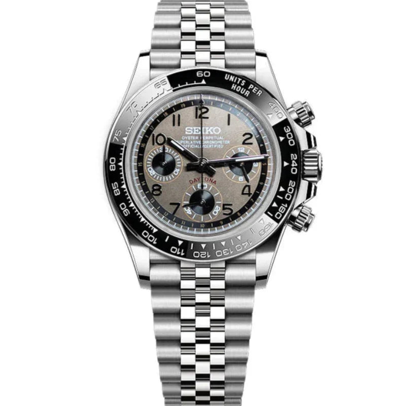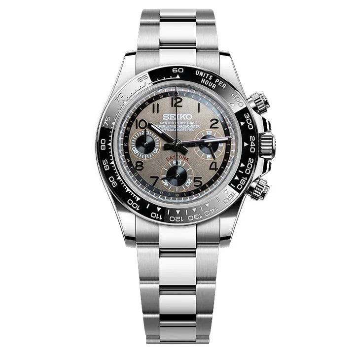 Inspired by the iconic Daytona design, and featuring the prestigious Seiko VK63 hybrid movement, we present the Seiko Mod Daytona. A 40 mm high-end quality watch combining the perfect alliance between excellence and accessibility.