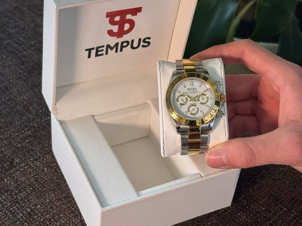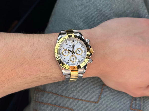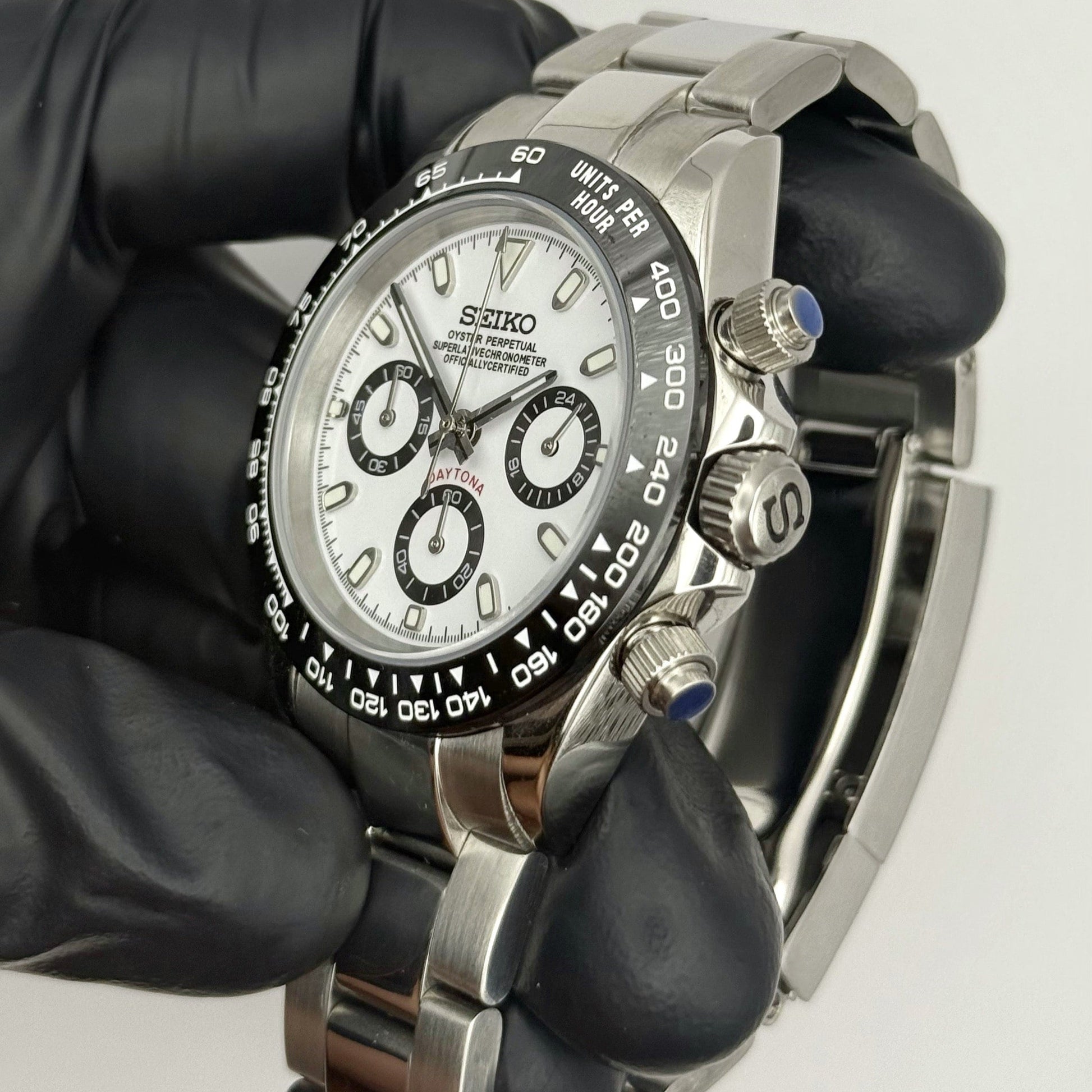 Inspired by the iconic Daytona design, and featuring the prestigious Seiko VK63 hybrid movement, we present the Seiko Mod Daytona. A 40 mm high-end quality watch combining the perfect alliance between excellence and accessibility.