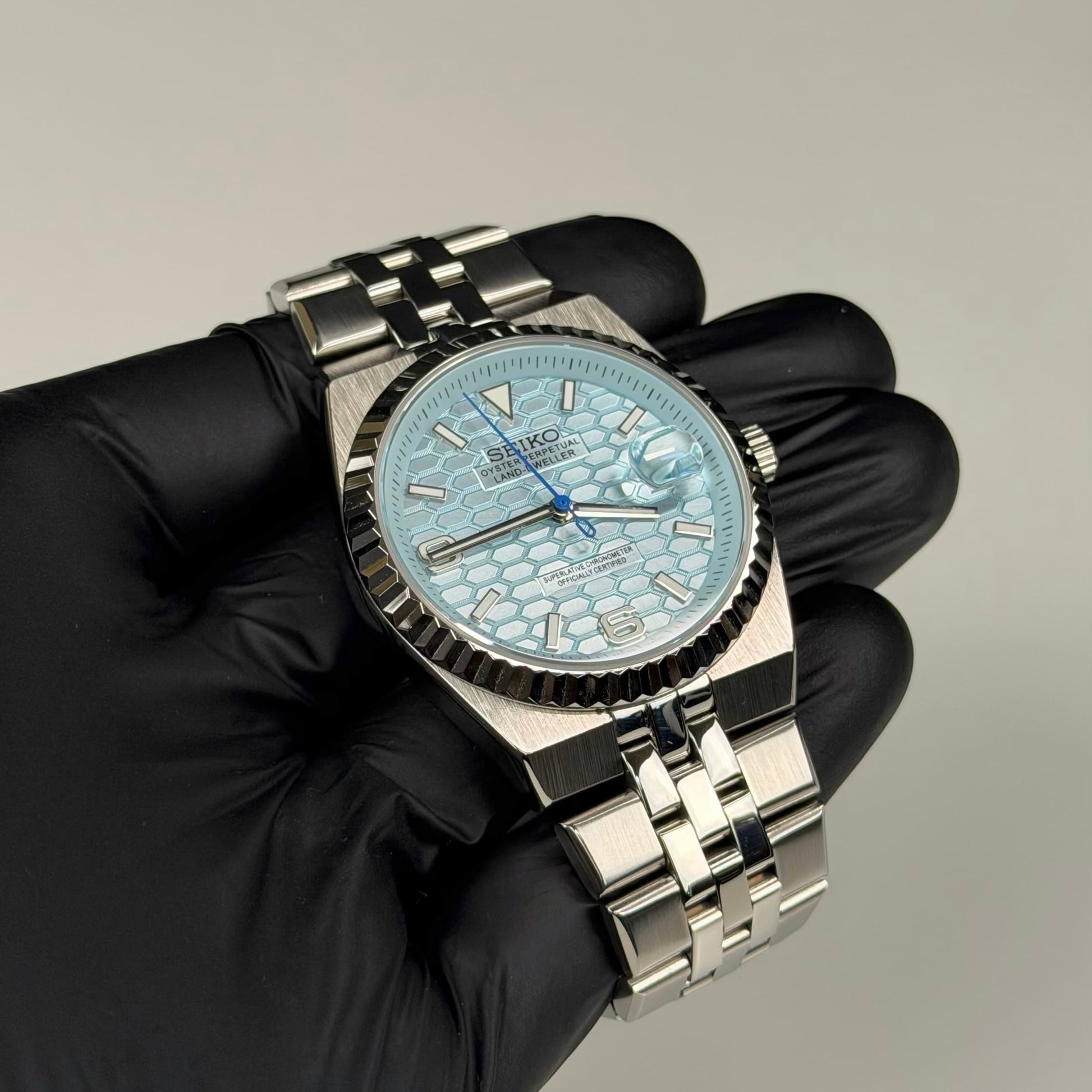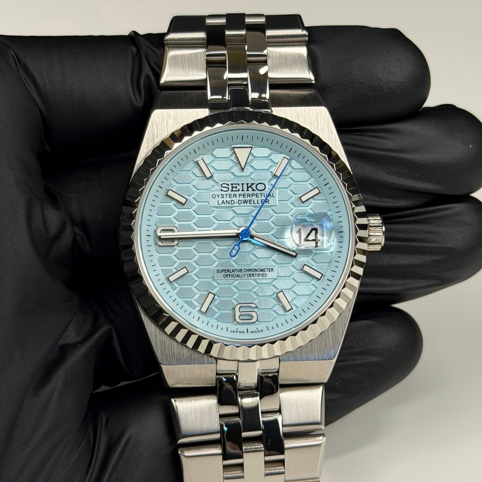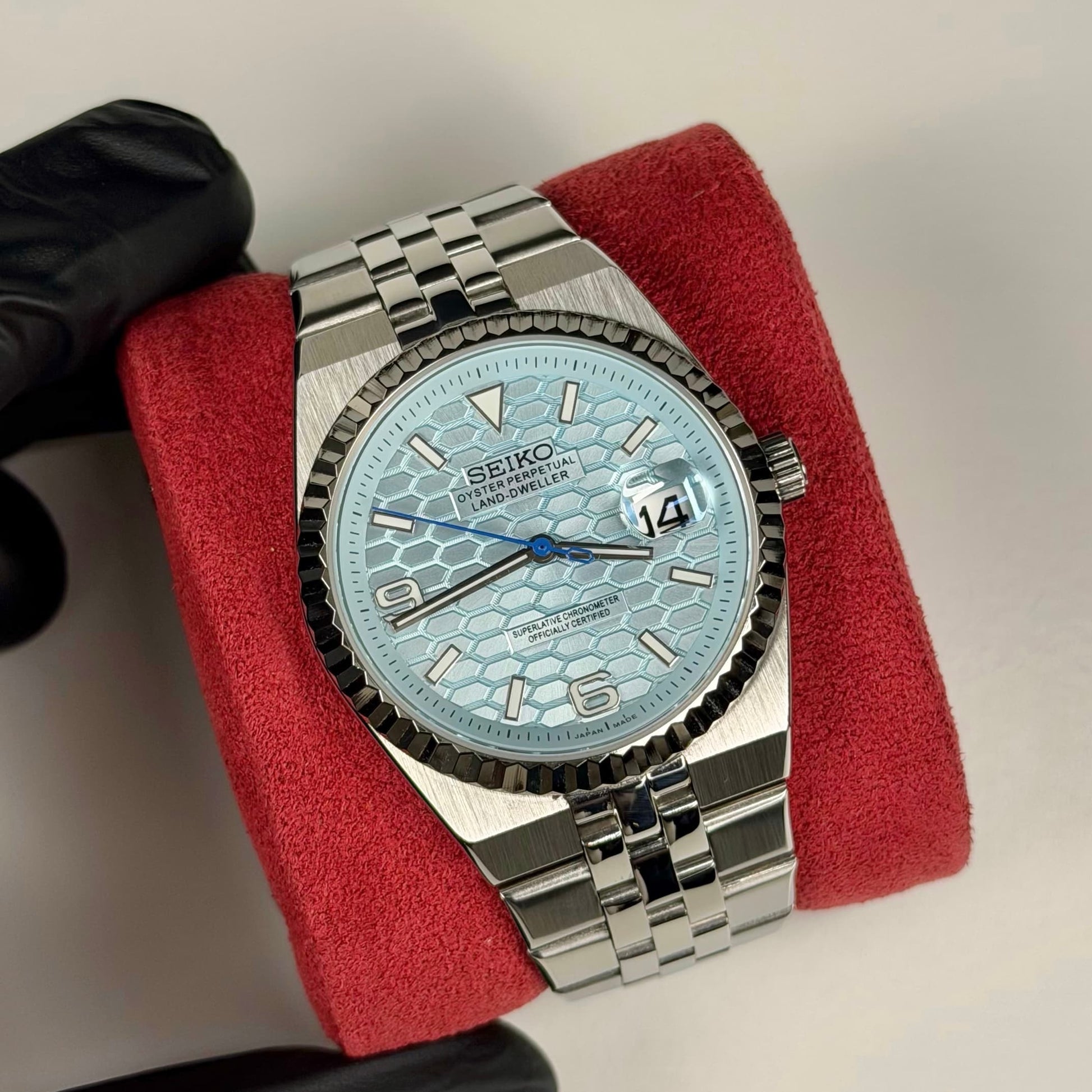 Inspiriert vom ikonischen Land-Dweller-Design, und ausgestattet mit dem renommierten automatischen Seiko NH35-Uhrwerk, präsentieren wir die Seiko Mod Land Dweller. Eine 39 mm hochwertige Uhr, die die perfekte Allianz zwischen Exzellenz und Zugänglichkeit vereint.