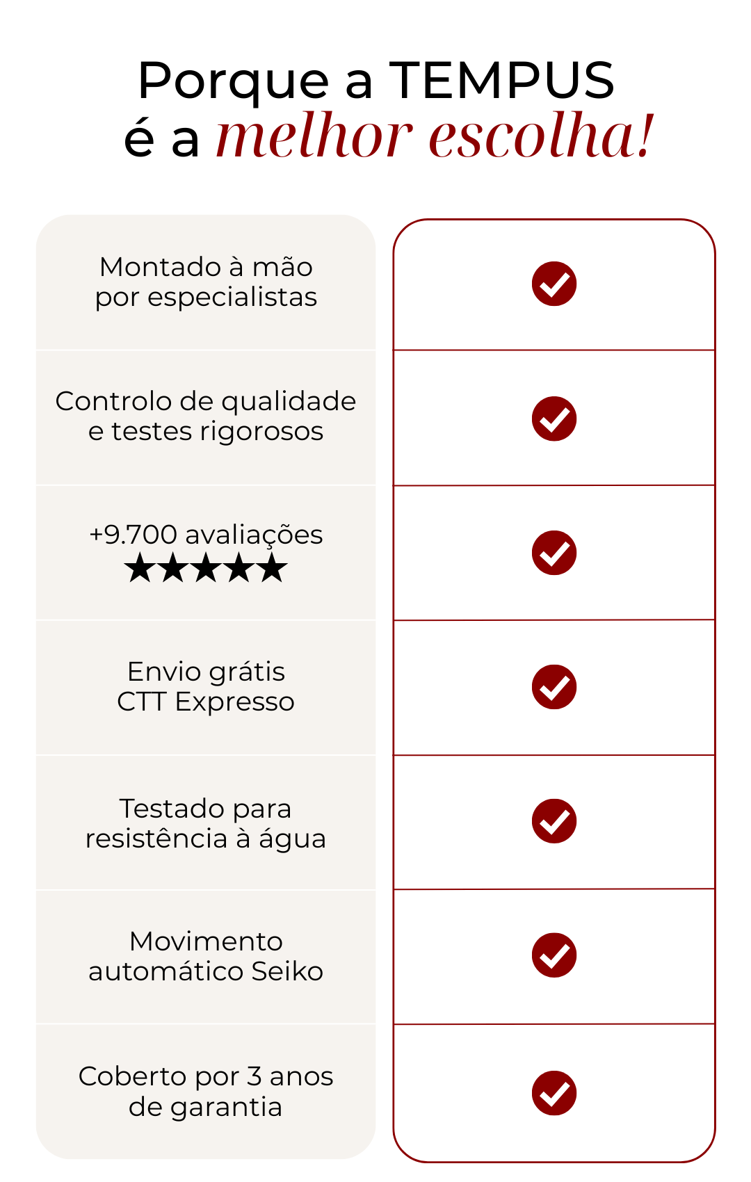 Confiamos na qualidade dos nossos relógios. Por isso tens 30 dias para garantir que o teu Tempus corresponde às tuas expectativas.