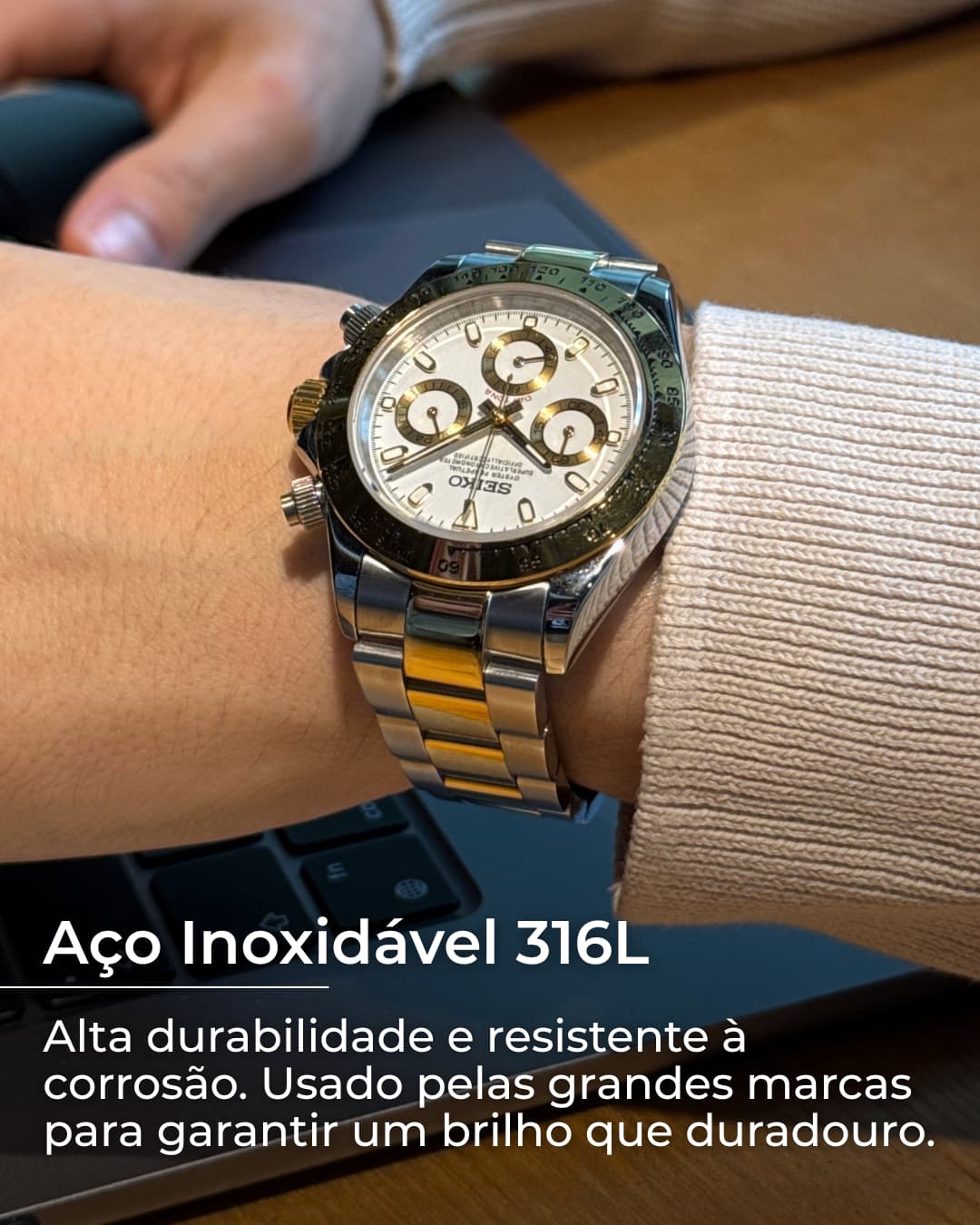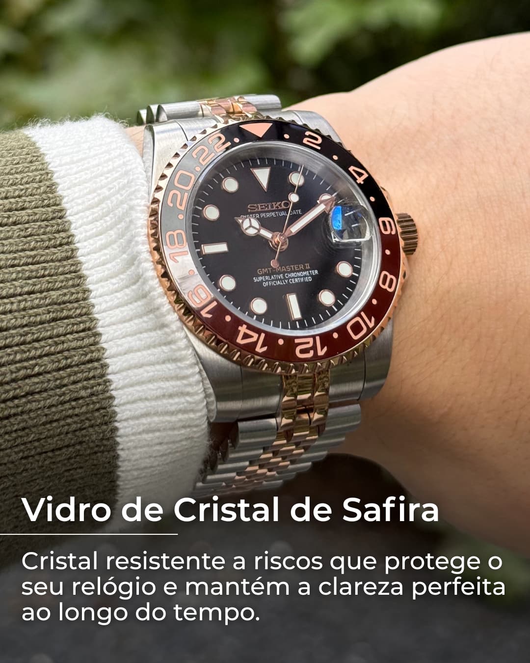 Feito em Aço Inoxidável 904L e Cristal de Safira para verdadeira durabilidade e elegância.