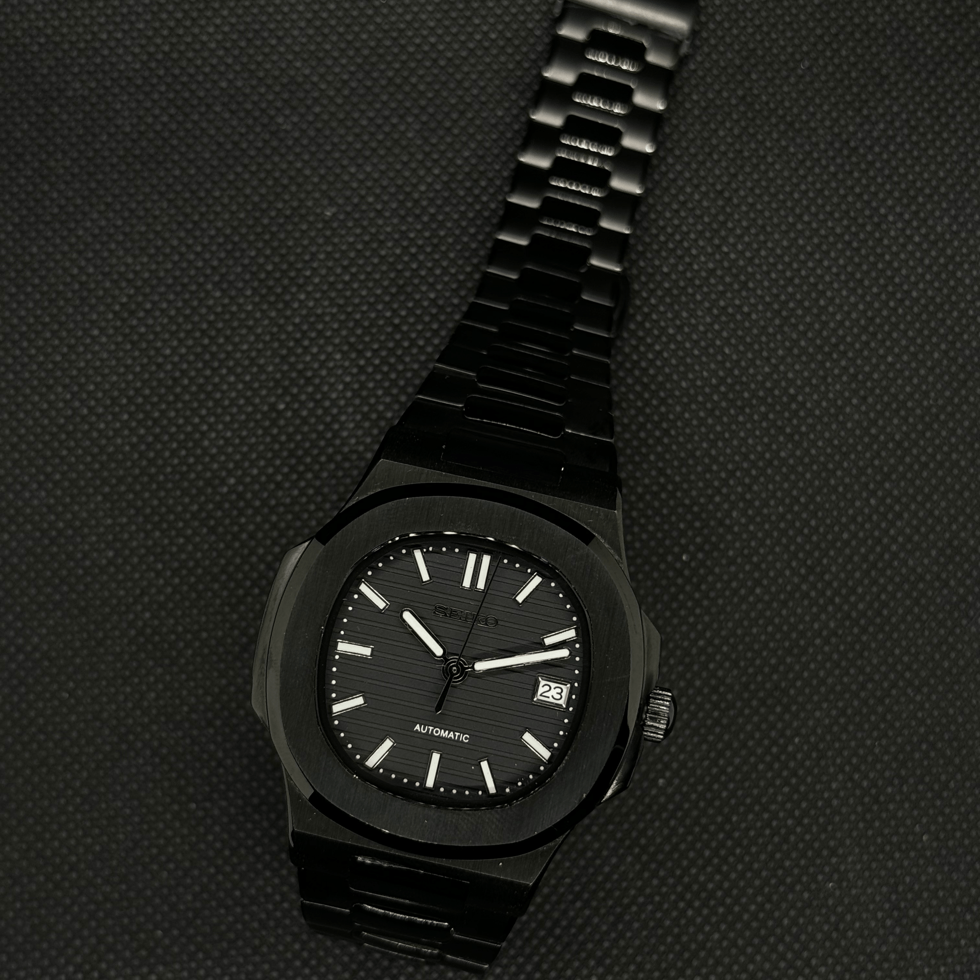 Inspiriert vom ikonischen Nautilus-Design, und ausgestattet mit dem renommierten automatischen Seiko NH35-Uhrwerk, präsentieren wir die Seiko Mod Nautilus. Eine 41 mm hochwertige Uhr, die die perfekte Allianz zwischen Exzellenz und Zugänglichkeit vereint.