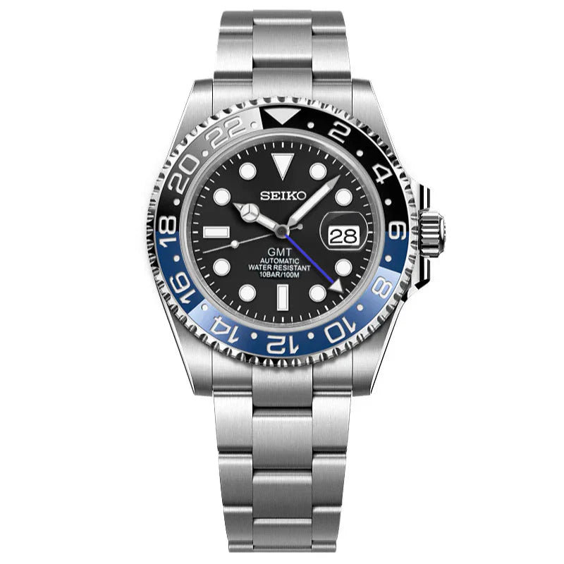 Inspiriert vom ikonischen GMT-Design, und ausgestattet mit dem renommierten automatischen Seiko NH34-Uhrwerk, präsentieren wir die Seiko Mod GMT. Eine 40 mm hochwertige Uhr, die die perfekte Allianz zwischen Exzellenz und Zugänglichkeit vereint.