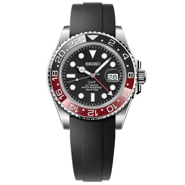 Inspiriert vom ikonischen GMT-Design, und ausgestattet mit dem renommierten automatischen Seiko NH34-Uhrwerk, präsentieren wir die Seiko Mod GMT. Eine 40 mm hochwertige Uhr, die die perfekte Allianz zwischen Exzellenz und Zugänglichkeit vereint.