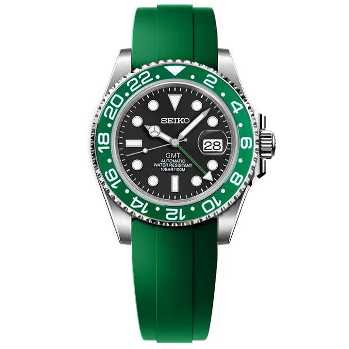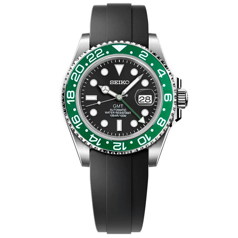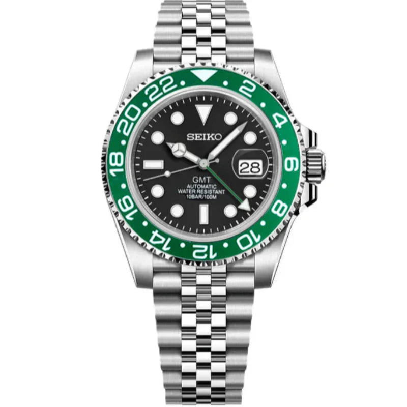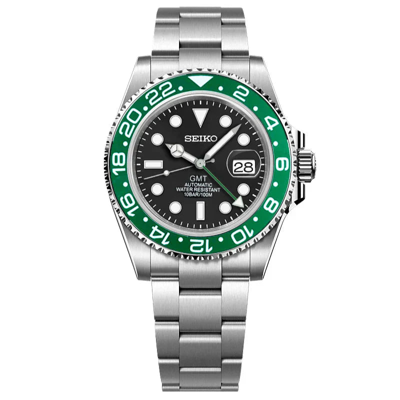 Inspiriert vom ikonischen GMT-Design, und ausgestattet mit dem renommierten automatischen Seiko NH34-Uhrwerk, präsentieren wir die Seiko Mod GMT. Eine 40 mm hochwertige Uhr, die die perfekte Allianz zwischen Exzellenz und Zugänglichkeit vereint.