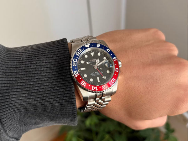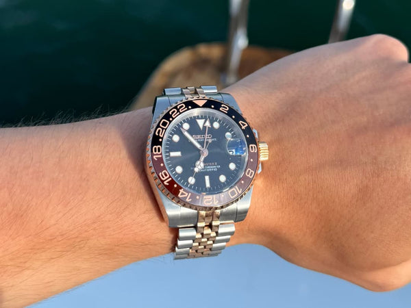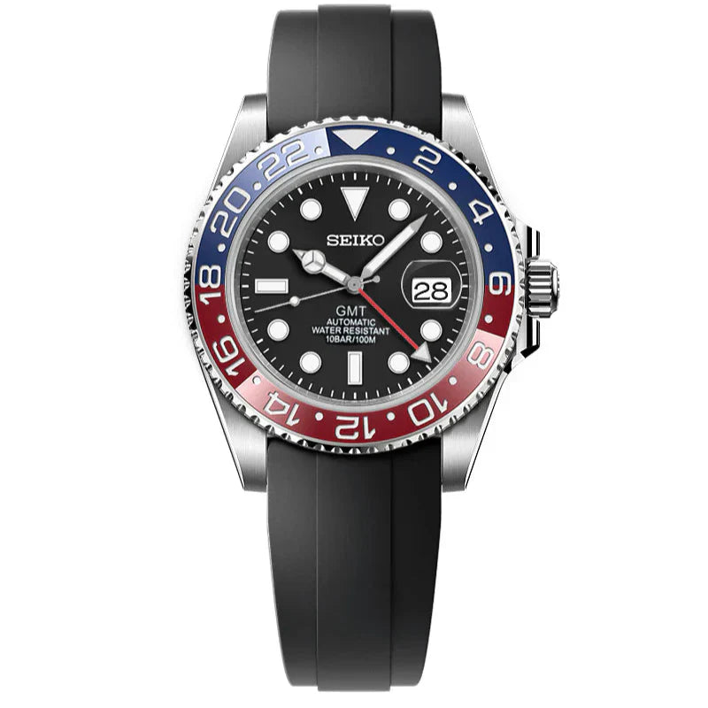 Inspiriert vom ikonischen GMT-Design, und ausgestattet mit dem renommierten automatischen Seiko NH34-Uhrwerk, präsentieren wir die Seiko Mod GMT. Eine 40 mm hochwertige Uhr, die die perfekte Allianz zwischen Exzellenz und Zugänglichkeit vereint.